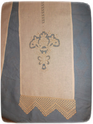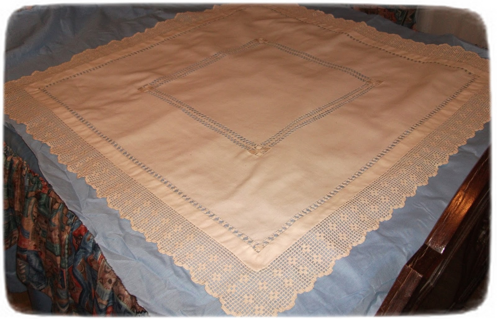 Gosto muito desta toalha de mesa, acho de um enorme bom gosto, porque não peca pelo exagero, simples, mas bonita ... não cheguei a vê-la pronta, mas sei que as fotos não lhe fazem justiça.