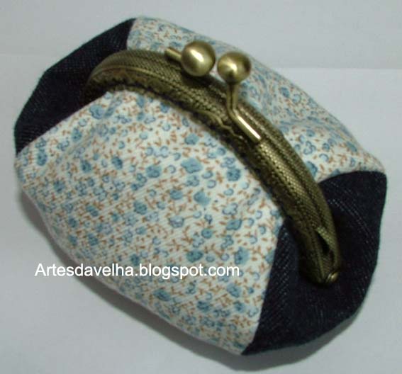 E hoje mostro mais um porta-moedas, com um padrão diferente, apesar da ganga permanecer ... gosto muito dos trabalhos com ganga e tecidos floridos.